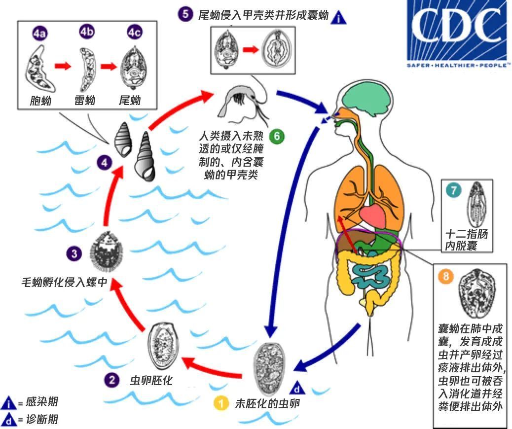(美国CDC对肺吸虫感染全流程的介绍[1]。)